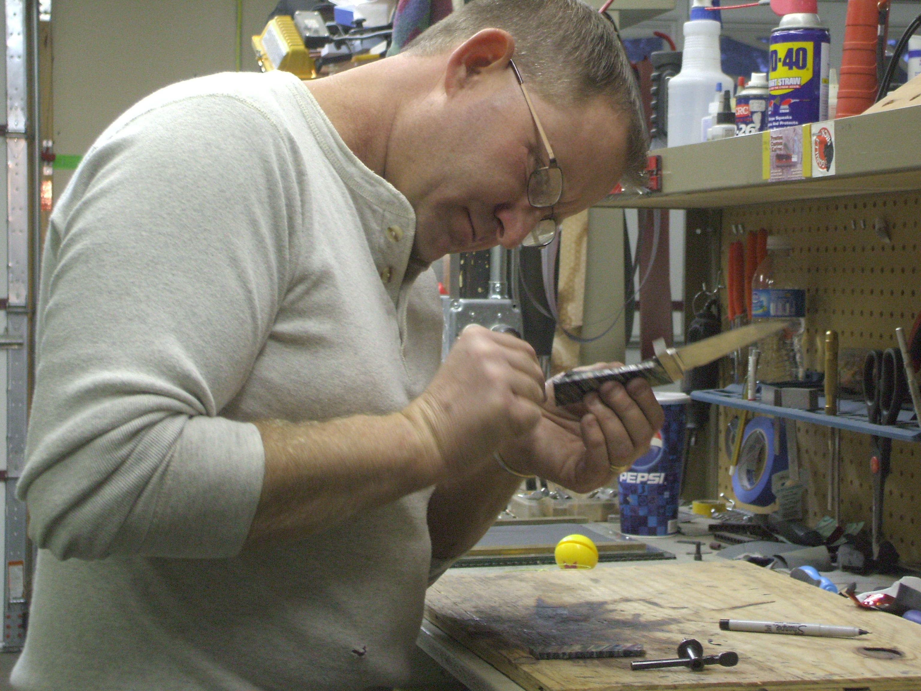 We have the wonderful fortune of living across the street from our good friends, Rusty and Sally Preston, in Port Isabel, TX. I spent a few years watching Rusty make knives, One day I mentioned, "I would like to build a knife someday". Rusty immediately offered to allow me to build one under his supervision in his shop. I spent the better part of a week building my first folder and I have been hooked ever since! Take some time to look at some of Rusty's amazing work on his website you will find in links.