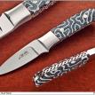 Unless otherwise specified, fixed blades are ATS-34 stainless steel and bolsters are 416 stainless steel. Pinstock is also 416 stainless. Blades normally have a hand rubbed satin finish and bolsters are either given a mirror finish or satin finish.