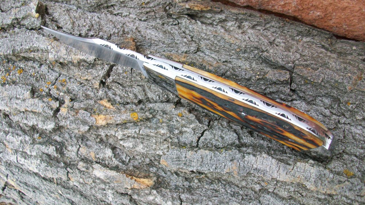 Click on each picture to get a full view. The first picture of each knife will contain a description which will include length of knife open and closed. It will also identify handle material and give any other information about the knife.