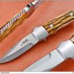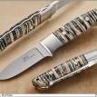 Unless otherwise specified, fixed blades are ATS-34 stainless steel and bolsters are 416 stainless steel. Pinstock is also 416 stainless. Blades normally have a hand rubbed satin finish and bolsters are either given a mirror finish or satin finish.