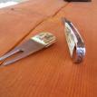 Click on each picture to get a full view. The first picture of each knife will contain a description which will include length of knife open and closed. It will also identify handle material and give any other information about the knife.